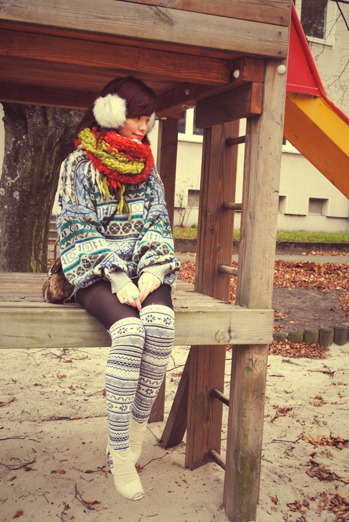 This knee high socks is from h&m. It has the similar prints like my sweater so i mixed them together for this today look ^___^